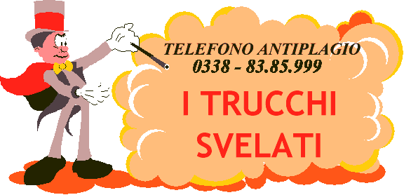 Il trucco è una delle componenti essenziali del bagaglio dei cosiddetti "occultisti". Tramite taluni stratagemmi, il "mago" riesci a catalizzare l'attenzione degli sprovveduti, facendo loro credere di avere poteri soprannaturali. Abbiamo scoperto che in Italia esistono ditte specializzate in trucchi per "operatori dell'occulto". E' anche per questo motivo che abbiamo deciso di svelarvene alcuni, grazie alla preziosa collaborazione dell'illusionista Alfredo Barrago. Per smascherare chi Vi vuole imbrogliare ricordatevi sempre di chiedere la sostituzione degli oggetti utilizzati (il tavolino, la sedia ecc.), e sentite la risposta che vi danno. LA FOTO CHE NON SI BAGNAIl "mago" chiede una fotografia al cliente e dopo averla immersa nell'acqua la estrae asciutta. Il ciarlatano opera questa messa in scena per convincere lo sprovveduto di turno che come l'acqua non bagna la foto, così nessuna disgrazia lo colpirà, in quanto è protetto. L'effetto è ottenuto grazie ad una polvere definita " magica" che in realtà è polvere di licopodio, acquistabile in una qualsiasi erboristeria a circa £ 30.000. Per chi volesse provare l'esperimento precisiamo che la polvere in questione va sparsa, in quantità abbondante, sulla superficie dell'acqua contenuta in un contenitore trasparente (rende l'effetto più sorprendente). La foto, poi , va immersa nell'acqua lentamente, almeno fino a metà, ed altrettanto lentamente estratta. "LACRIMAZIONI" DI STATUE O IMMAGINIGli stratagemmi possono essere vari; un'elettrovalvola, guidata da un radiocomando, posta all'interno della scultura (che prima del controllo delle Autorità viene sostituita con un'altra, identica); la congelazione dell'effigie, contenente già il liquido, che viene estratto dal freezer al momento opportuno; il posizionare le lacrime dall'esterno, che può essere ottenuto in due modi: 1) utilizzando un microdiffusore a pressione a forma di siringa; 2) sfruttando per caduta la forza di gravità. Esistono anche altri "metodi" che sono stati svelati dai collaboratori del CICAP. SEDIA "ELETTRICA" (o sedia di Costanzo)Il cliente viene fatto accomodare in una sedia di legno. Il "mago", per convincerlo dei suoi poteri, dice che, tramite ipnosi gli farà provare la sensazione della scossa. In realtà la sedia contiene all'interno, ben nascosto, un circuito elettrico radiocomandato a basso voltaggio che permette all' "occultista" di realizzare la sua truffa. IL BICCHIERE CHE ESPLODENella trasmissione "Buona Domenica" è stato presentato anche un altro effetto, che consiste nello spaccare un bicchiere su un tavolino con la "forza del pensiero". In realtà ben nascosto nel fondo del tavolino è posto un "simpatico" meccanismo formato da una molla carica (con una costante elastica, k, molto elevata) collegata ad un piccolo martelletto. Questo meccanismo, comandato a distanza, permette di far scattare la molla-martelletto che urtando il legno genera delle onde che propagandosi nel legno provocano la rottura del bicchiere. PREVISIONI STUPEFACENTIVolete dimostrare a qualcuno che siete in grado di indovinare in quale anno morirà un personaggio importante? Scegliete un vip abbastanza anziano (ma non troppo), prendete una ventina di buste, mettete dentro ogni busta una data scritta sempre diversa (a cominciare dall'anno in corso), e consegnatele a 20 notai. L'anno dell'evento sarete in grado di dimostrare ai giornalisti che l'avevate previsto. Se le previsioni invece le fate sui giornali, ricordatevi di tirare fuori, alla fine dell'anno, solo quelle azzeccate.