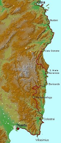 per quanto riguarda la pendenza. Dobbiamo abbandonare l'area in cui le montagne del Gennargentu si gettano in